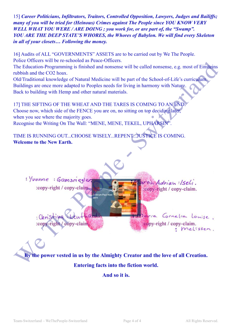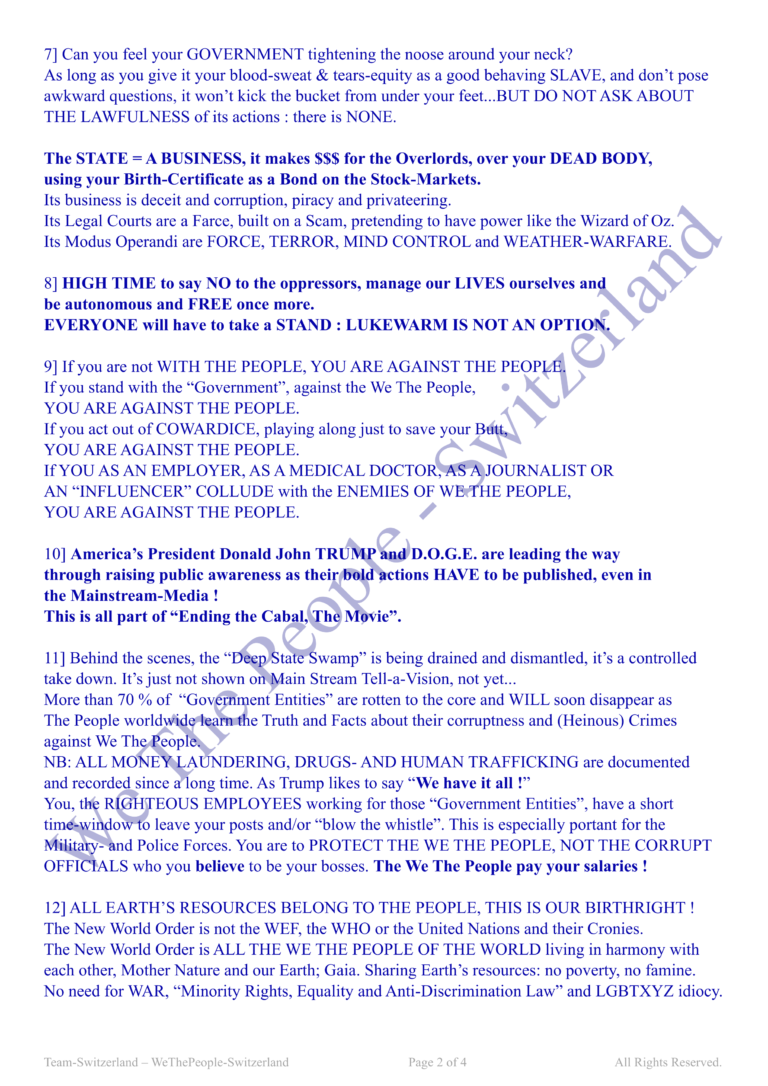We The People Switzerland CONFOEDERATIO HELVETICA Message to the Old World OrderLUKEWARM IS AN OPTION NO MORE :CHOOSE YOURE SIDE OF THE FENCE !
